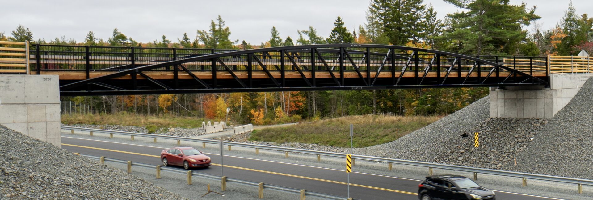 Algonquin Bridge has also designed and supplied similar bridges in Nova Scotia, such as this one over Highway 101 near Digby and this one over the Highway 103 connector at Ingramport.
